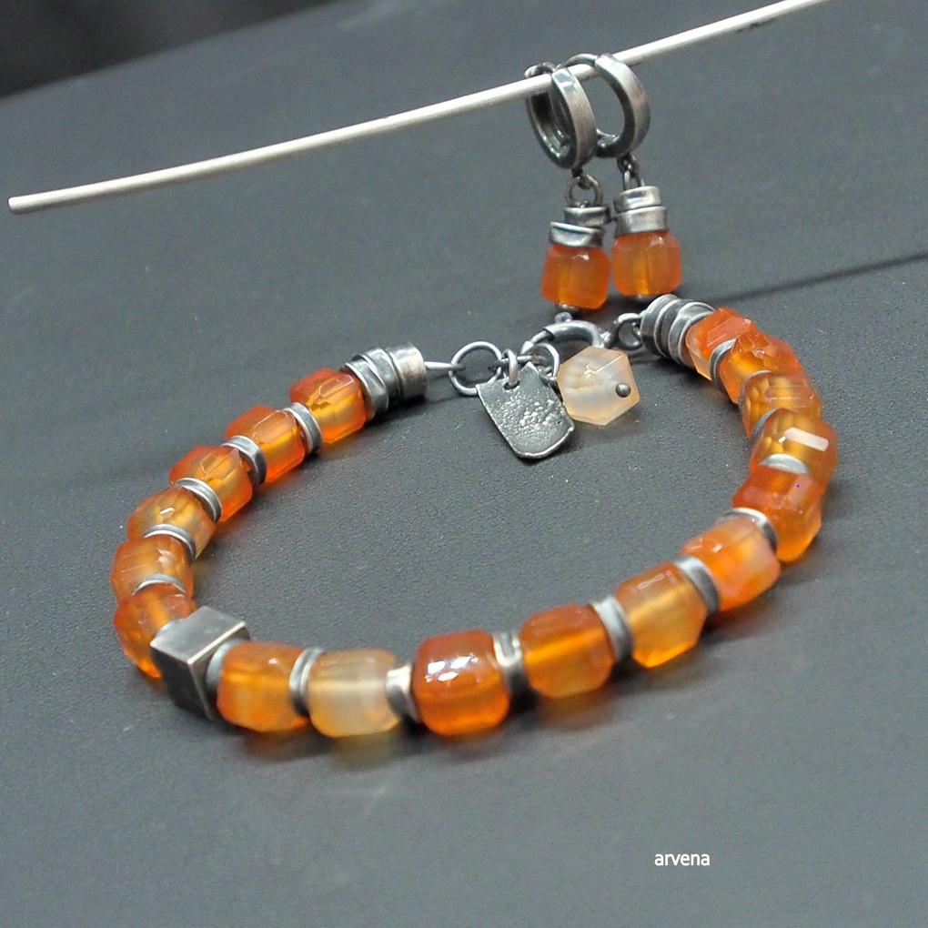 karneol-sześciany - kolczyki 02